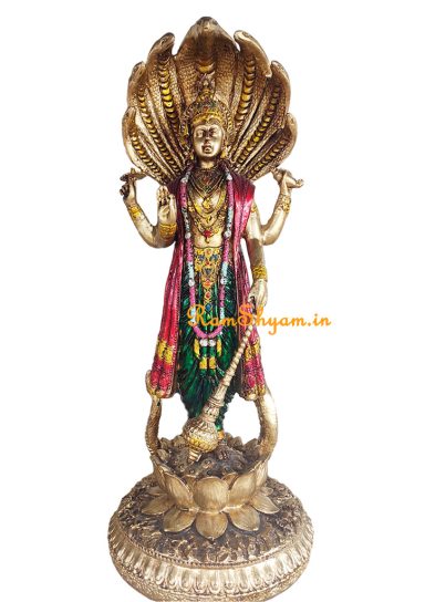 Brass Vishnu and Laxmi on Sheshnaag 4 inch