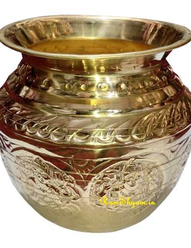 Brass Lota (Sembu) Kalash for Pooja Engraving Design 5 inch