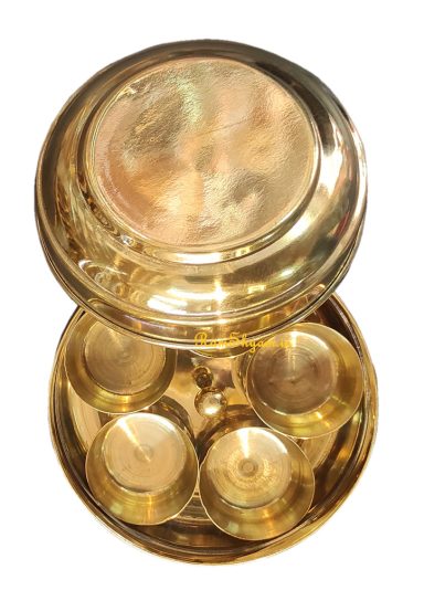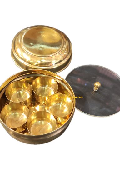 Brass Masala Box 3.5 inch Dia with Glass Cover and Brass Lid