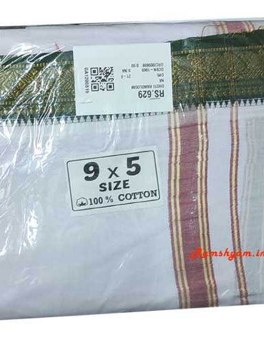10X6 White Dhoti With Golden Border- Panchakacham White