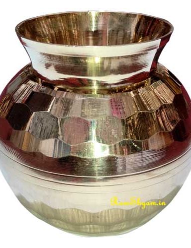 Brass Lota (Sembu) Kalash for Pooja Diamond Design 4.5 inch