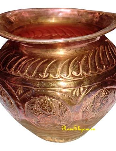 Brass Lota (Sembu) Kalash for Pooja Embossing Design 5 inch