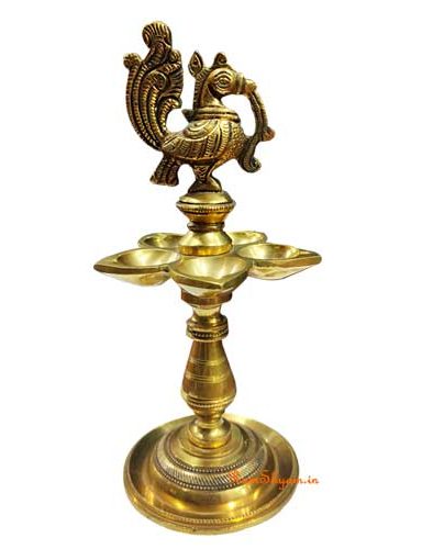 Brass Peacock Diya for Puja Room Heavy 8.25 inch